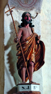 À partir de ce postulat, nous avons pu observer qu’une statue représentant saint Jean (fig. 2), située sur le retable du Calvaire de Bredons, possédait une facture presque identique [5].
