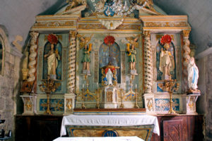 [4] Une carte postale de 1950 montre l’intérieur de l’église sans le retable.