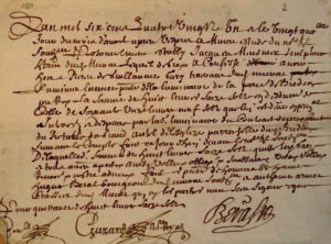 Les recherches menées pour l’étude sur les sculpteurs Boyer de Murat nous ont amenée à recroiser Jacques Mosnier à plusieurs reprises, notamment dans un acte qui nous apprend qu’il employait d’autres menuisiers : le 15 octobre 1680, Charles Loussert, menuisier et fils de menuisier, « s’est obligé envers ledit Mounyer de le servir pendant le temps et espace d’un an de son métier de menuiser », contre le couvert et 42 livres[3]. Il s’agissait donc d’un artisan bien installé à Murat.